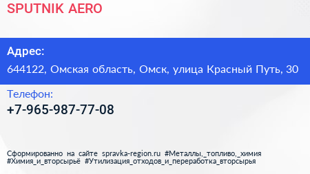 SPUTNIK AERO по адресу 644122, Омская область, Омск, улица Красный Путь, 30 в дальнейшем Организация, размещена в следующих категориях: