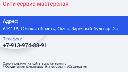 Сити-сервис, мастерская по адресу 644119, Омская область, Омск, Заречный бульвар, 2а в дальнейшем Организация, размещена в следующих категориях: