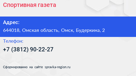 Спортивная газета+ по адресу 644018, Омская область, Омск, Будеркина, 2 в дальнейшем Организация, размещена в следующих категориях: