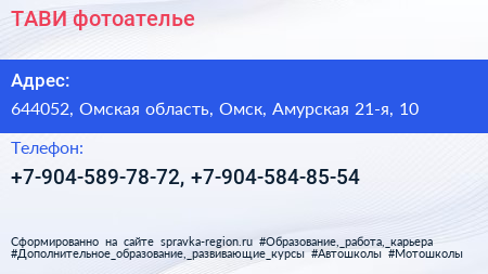ТАВИ, фотоателье по адресу 644052, Омская область, Омск, Амурская 21-я, 10 в дальнейшем Организация, размещена в следующих категориях: