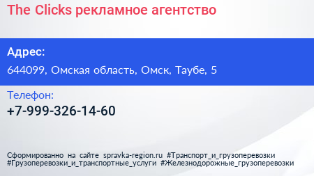 The Clicks, рекламное агентство по адресу 644099, Омская область, Омск, Таубе, 5 в дальнейшем Организация, размещена в следующих категориях: