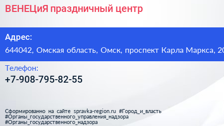 ВЕНЕЦиЯ, праздничный центр по адресу 644042, Омская область, Омск, проспект Карла Маркса, 20 в дальнейшем Организация, размещена в следующих категориях: