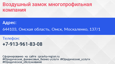 Воздушный замок, многопрофильная компания по адресу 644103, Омская область, Омск, Москаленко, 137/1 в дальнейшем Организация, размещена в следующих категориях: