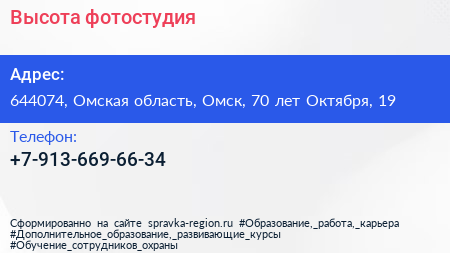 Высота, фотостудия по адресу 644074, Омская область, Омск, 70 лет Октября, 19 в дальнейшем Организация, размещена в следующих категориях: