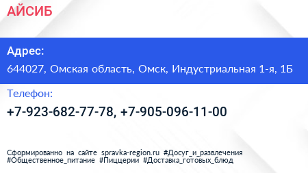 АЙСИБ по адресу 644027, Омская область, Омск, Индустриальная 1-я, 1Б в дальнейшем Организация, размещена в следующих категориях: