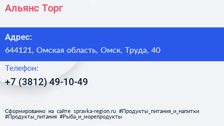 Альянс-Торг по адресу 644121, Омская область, Омск, Труда, 40 в дальнейшем Организация, размещена в следующих категориях: