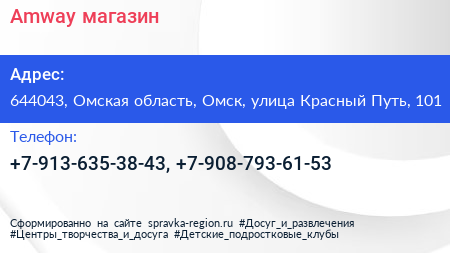 Amway, магазин по адресу 644043, Омская область, Омск, улица Красный Путь, 101 в дальнейшем Организация, размещена в следующих категориях: