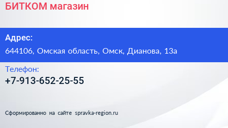 БИТКОМ, магазин по адресу 644106, Омская область, Омск, Дианова, 13а в дальнейшем Организация, размещена в следующих категориях: