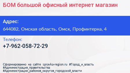 БОМ, большой офисный интернет-магазин по адресу 644082, Омская область, Омск, Профинтерна, 4 в дальнейшем Организация, размещена в следующих категориях: