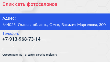 Блик, сеть фотосалонов по адресу 644025, Омская область, Омск, Василия Маргелова, 300 в дальнейшем Организация, размещена в следующих категориях: