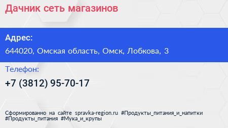 Дачник, сеть магазинов по адресу 644020, Омская область, Омск, Лобкова, 3 в дальнейшем Организация, размещена в следующих категориях:
