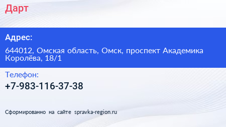 Дарт по адресу 644012, Омская область, Омск, проспект Академика Королёва, 18/1 в дальнейшем Организация, размещена в следующих категориях: