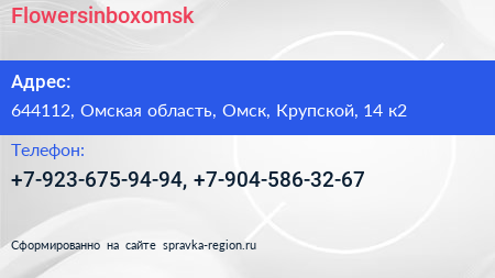 Flowersinboxomsk по адресу 644112, Омская область, Омск, Крупской, 14 к2 в дальнейшем Организация, размещена в следующих категориях: