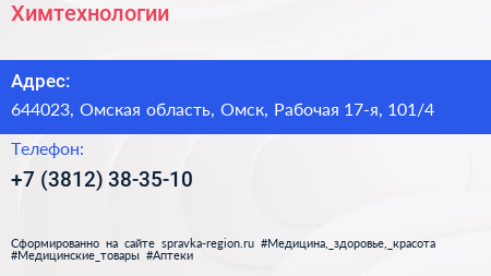 Химтехнологии по адресу 644023, Омская область, Омск, Рабочая 17-я, 101/4 в дальнейшем Организация, размещена в следующих категориях:
