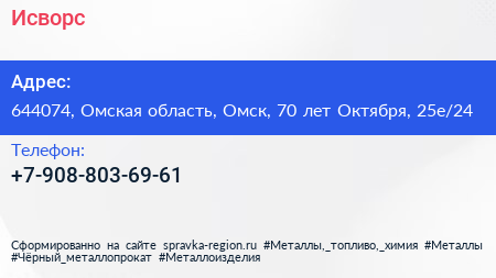 Исворс по адресу 644074, Омская область, Омск, 70 лет Октября, 25е/24 в дальнейшем Организация, размещена в следующих категориях: