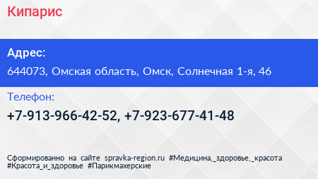 Кипарис по адресу 644073, Омская область, Омск, Солнечная 1-я, 46 в дальнейшем Организация, размещена в следующих категориях: