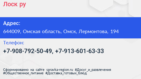 Лоск.ру по адресу 644009, Омская область, Омск, Лермонтова, 194 в дальнейшем Организация, размещена в следующих категориях: