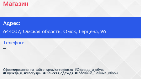 Магазин по адресу 644007, Омская область, Омск, Герцена, 96 в дальнейшем Организация, размещена в следующих категориях: