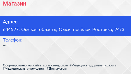 Магазин по адресу 644527, Омская область, Омск, посёлок Ростовка, 24/3 в дальнейшем Организация, размещена в следующих категориях: