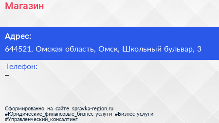 Магазин по адресу 644521, Омская область, Омск, Школьный бульвар, 3 в дальнейшем Организация, размещена в следующих категориях: