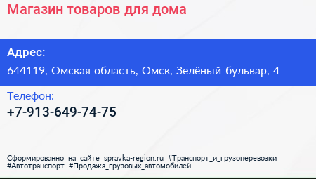 Магазин товаров для дома по адресу 644119, Омская область, Омск, Зелёный бульвар, 4 в дальнейшем Организация, размещена в следующих категориях: