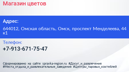 Магазин цветов по адресу 644012, Омская область, Омск, проспект Менделеева, 44 к1 в дальнейшем Организация, размещена в следующих категориях: