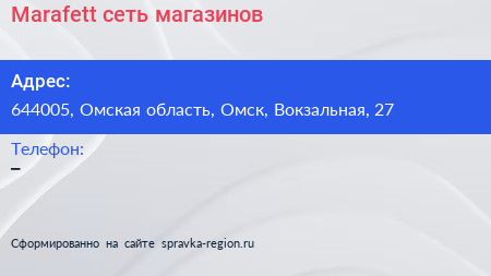 Marafett, сеть магазинов по адресу 644005, Омская область, Омск, Вокзальная, 27 в дальнейшем Организация, размещена в следующих категориях: