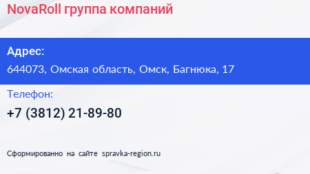 NovaRoll, группа компаний по адресу 644073, Омская область, Омск, Багнюка, 17 в дальнейшем Организация, размещена в следующих категориях: