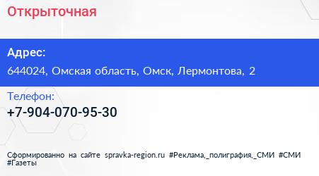 Открыточная по адресу 644024, Омская область, Омск, Лермонтова, 2 в дальнейшем Организация, размещена в следующих категориях: