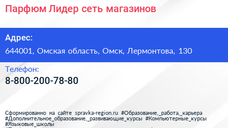 Парфюм-Лидер, сеть магазинов по адресу 644001, Омская область, Омск, Лермонтова, 130 в дальнейшем Организация, размещена в следующих категориях: