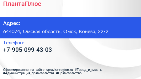 ПлантаПлюс по адресу 644074, Омская область, Омск, Конева, 22/2 в дальнейшем Организация, размещена в следующих категориях: