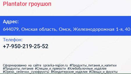 Plantator, гроушоп по адресу 644079, Омская область, Омск, Железнодорожная 1-я, 40 в дальнейшем Организация, размещена в следующих категориях: