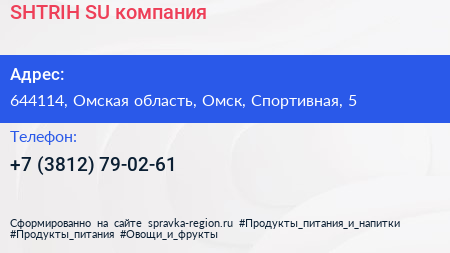 SHTRIH.SU, компания по адресу 644114, Омская область, Омск, Спортивная, 5 в дальнейшем Организация, размещена в следующих категориях: