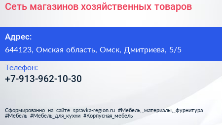 Сеть магазинов хозяйственных товаров по адресу 644123, Омская область, Омск, Дмитриева, 5/5 в дальнейшем Организация, размещена в следующих категориях: