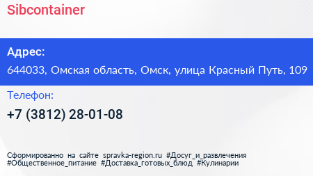 Sibcontainer по адресу 644033, Омская область, Омск, улица Красный Путь, 109 в дальнейшем Организация, размещена в следующих категориях: