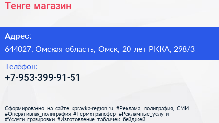 Тенге, магазин по адресу 644027, Омская область, Омск, 20 лет РККА, 298/3 в дальнейшем Организация, размещена в следующих категориях: