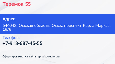 Теремок 55 по адресу 644042, Омская область, Омск, проспект Карла Маркса, 18/8 в дальнейшем Организация, размещена в следующих категориях: