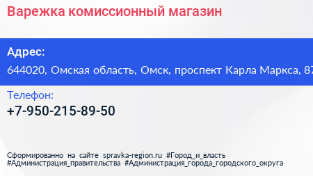 Варежка, комиссионный магазин по адресу 644020, Омская область, Омск, проспект Карла Маркса, 87 в дальнейшем Организация, размещена в следующих категориях: