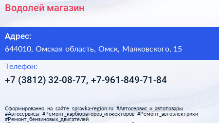 Водолей, магазин по адресу 644010, Омская область, Омск, Маяковского, 15 в дальнейшем Организация, размещена в следующих категориях: