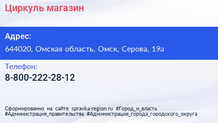 Циркуль, магазин по адресу 644020, Омская область, Омск, Серова, 19а в дальнейшем Организация, размещена в следующих категориях: