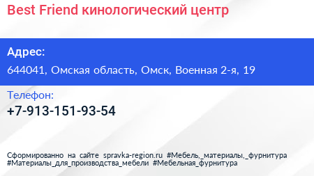 Best Friend, кинологический центр по адресу 644041, Омская область, Омск, Военная 2-я, 19 в дальнейшем Организация, размещена в следующих категориях: