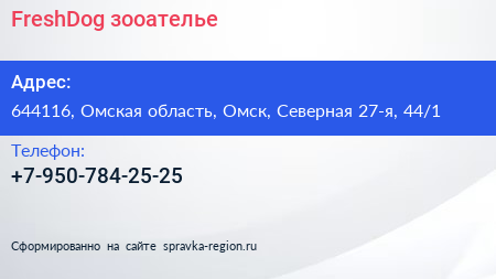 FreshDog, зооателье по адресу 644116, Омская область, Омск, Северная 27-я, 44/1 в дальнейшем Организация, размещена в следующих категориях: