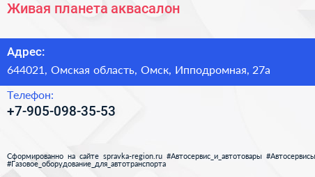 Живая планета, аквасалон по адресу 644021, Омская область, Омск, Ипподромная, 27а в дальнейшем Организация, размещена в следующих категориях: