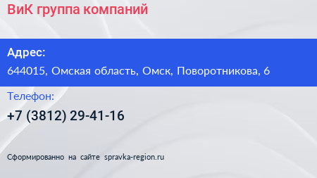 ВиК, группа компаний по адресу 644015, Омская область, Омск, Поворотникова, 6 в дальнейшем Организация, размещена в следующих категориях: