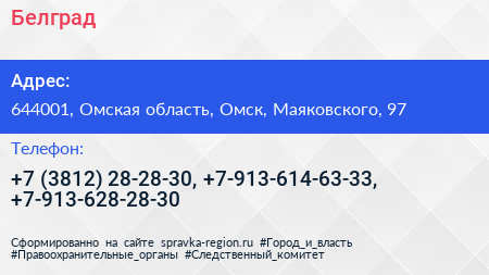 Белград по адресу 644001, Омская область, Омск, Маяковского, 97 в дальнейшем Организация, размещена в следующих категориях: