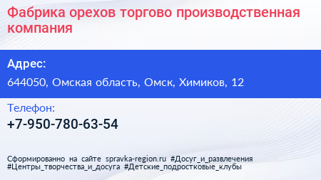 Фабрика орехов, торгово-производственная компания по адресу 644050, Омская область, Омск, Химиков, 12 в дальнейшем Организация, размещена в следующих категориях: