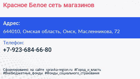 Красное & Белое, сеть магазинов по адресу 644010, Омская область, Омск, Масленникова, 72 в дальнейшем Организация, размещена в следующих категориях: