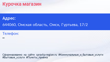 Курочка, магазин по адресу 644060, Омская область, Омск, Гуртьева, 17/2 в дальнейшем Организация, размещена в следующих категориях: