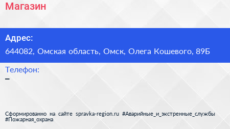Магазин по адресу 644082, Омская область, Омск, Олега Кошевого, 89Б в дальнейшем Организация, размещена в следующих категориях: