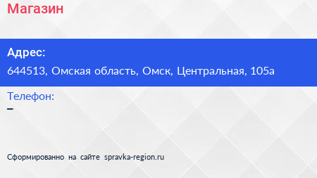 Магазин по адресу 644513, Омская область, Омск, Центральная, 105а в дальнейшем Организация, размещена в следующих категориях: